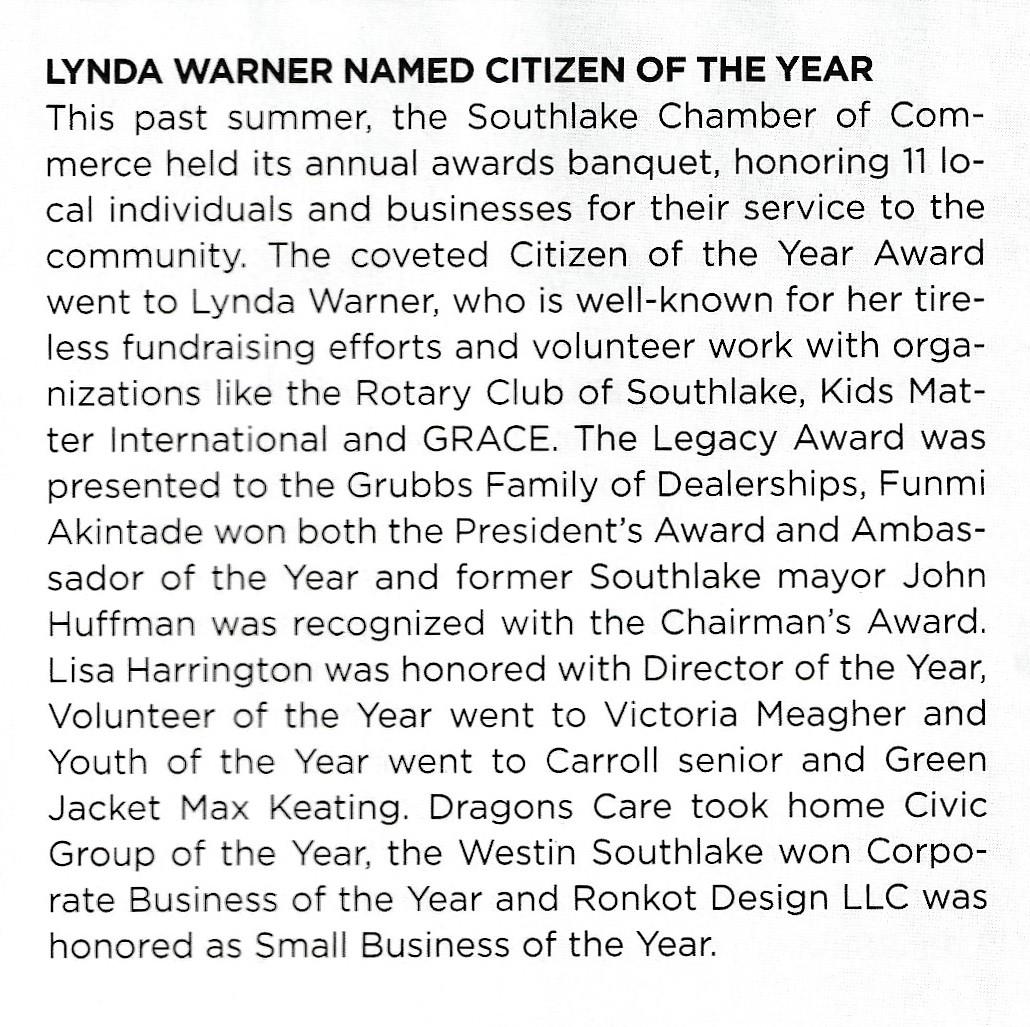 Below is from the Southlake Chamber of Commerce magazine.